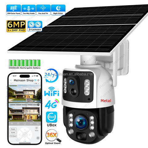 Ubox Outdoor Solar Powered Wireless WiFi 4G 36X Optical Zoom PTZ Camera Dual Lens CCTV Security WiFi 4G Sim Card Solar Camera