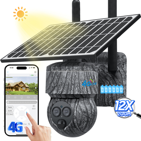 6MP Ubox Camouflage 12X Zoom 4G SIM Card Wireless Solar Surveillance PTZ Camera Dual Lens CCTV Outdoor Security 4G Solar Camera