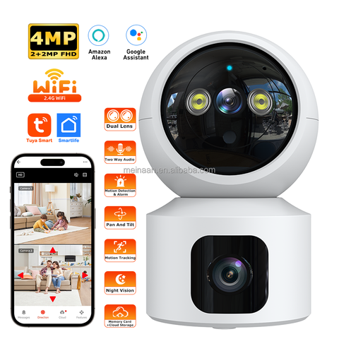OEM 4MP 2K Dual Lens Smart Home Indoor Wireless WiFi Network IP PTZ Camera Tuya Smartlife APP CCTV WiFi Security Camera
