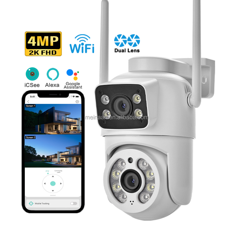 New Arrival 4MP 2K ICSee Dual Lens Outdoor Waterproof Wireless WiFi Network IP PTZ CCTV WiFi Home Security Camera