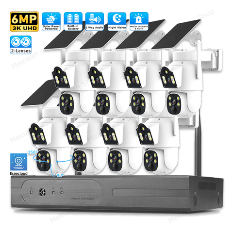 Wholesale 6MP 2-8CH Dual Lens Wireless WiFi Solar PTZ IP Camera System NVR CCTV Kit Outdoor Solar Security Surveillance System