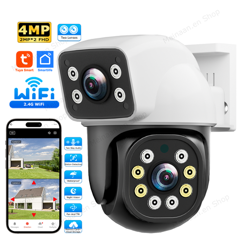 OEM 4MP 2K Dual Lens Outdoor Waterproof Wireless WiFi Network IP PTZ Camera Tuya Smartlife APP CCTV WiFi Home Security Camera